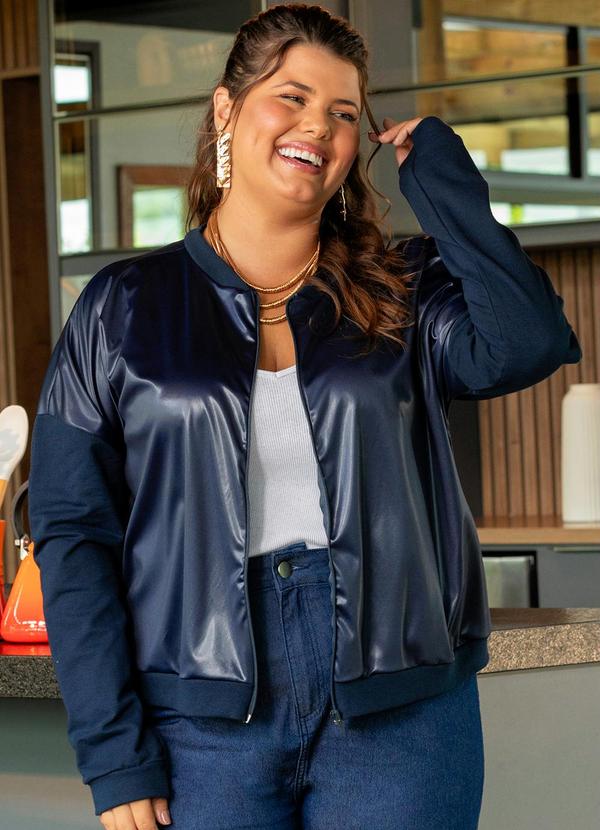 Jaqueta Feminina Plus Size Confeccionada em Moletinho com Elastano.